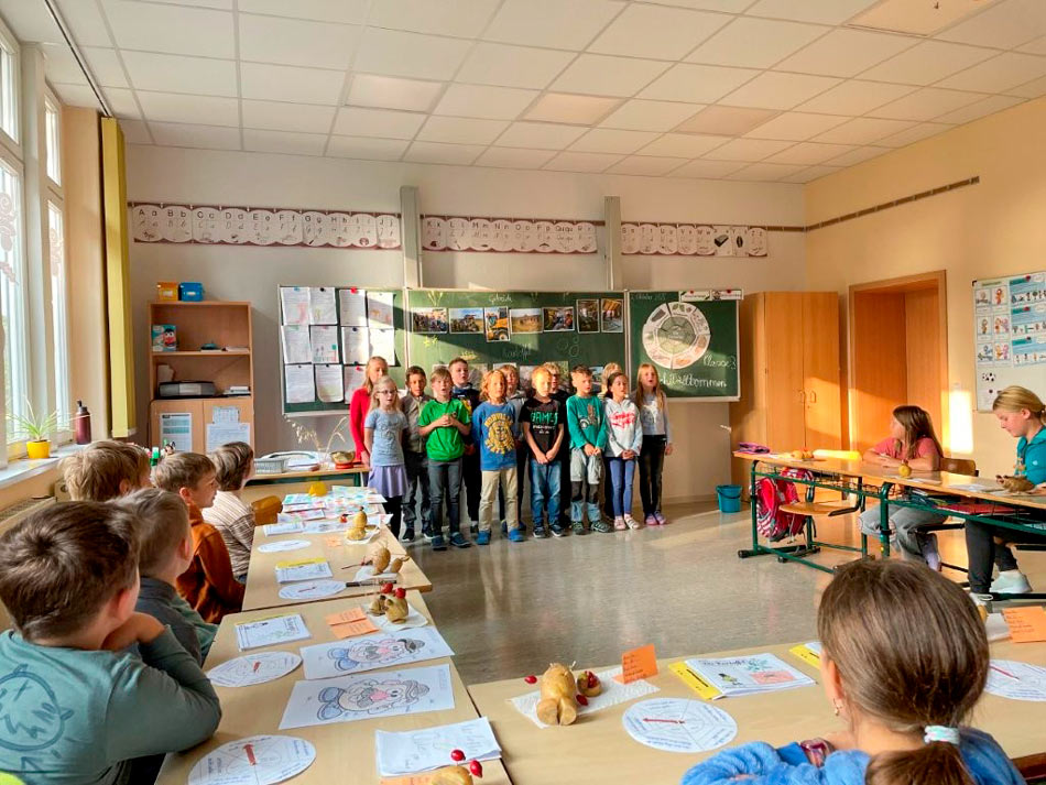 Unsere 3. Klasse hat sich erfolgreich mit ihrer Klassenlehrerin Frau Niemann im Rahmen des Kartoffelprojektes „Eine tolle Knolle“ beworben. Deshalb durften alle Klassen gruppenweise von 8.00 Uhr bis 14.00 Uhr im Bus kochen. Das war ein tolles Erlebnis!